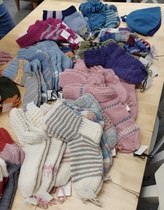 Kevään 2025 projektina oli 'Käsitöitä keskosille', jonka tuloksena syntyi pikkuisia myssyjä, sukkia ja tumppuja.