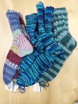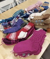 Syksyn 2024 aikana Kässämartat ahkeroivat 50 upeaa sukkaparia ja pari myssyä toimitettavaksi Ukrainaan.