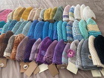 Kevään 2024 projektissa valmistui 60 toinen toistaan hienompaa sytomyssyä Syöpätautien klinikalle.
