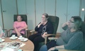 Marianne Koskimies vieraili Kässämartoissa 25.9.2023 ja esitteli Etelä-Afrikassa tehtyjä mohairlankoja ja niistä valm. neuleita