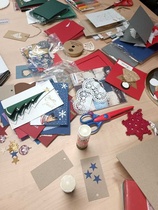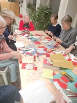 Kässämartat ahkeroivat kortteja Tapanilan vuoden 2023 joulumyyjäisiin.