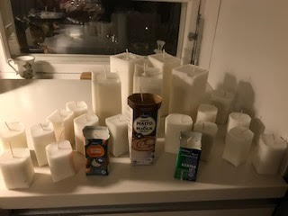 Lahjoituksista koostui neljä jätesäkillistä tavaraa sekä iso kassi kynttilöitä, jotka vapaaehtoinen vantaalainen pariskunta toimittaa perille Ukrainaan.