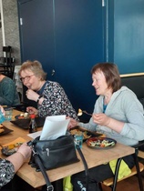 Marttojen lukupiiritapaaminen pidettiin 16.8.2023 Porvoossa Annin mökillä. Kokopäiväretken aluksi poikettiin Haikkoon, jossa tutustuttiin Albert Edelfeltin kesäateljeehen ja Villa Albertin näyttelyyn. Matkaa jatkettiin Annin kesäparatiisiin, jossa keskusteltiin kesän aikana luetuista kirjoista ja nautitttiin nyyttikestilounas kahveineen. Paluumatkalla poikettiin tietysti Brunbergin karkkitehtaan myymälässä ja Teeteeshopin lankamyymälässä.