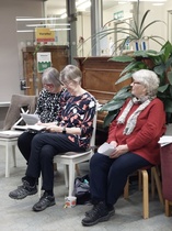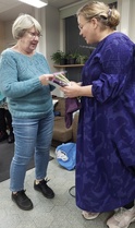 Marttojen valtakunnallinen patalappupäivä 3.5. Malmin martat jakoivat patalappuja Malmitalossa.