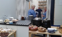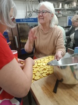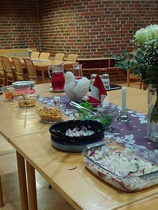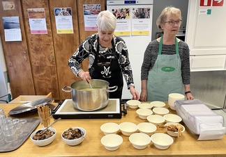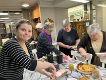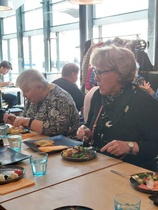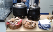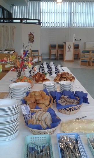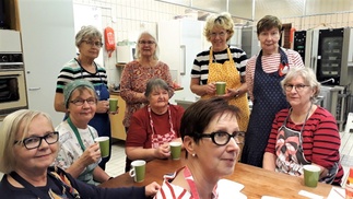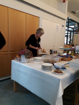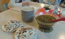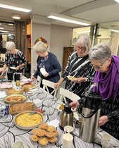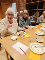 Malmin seurakunnan Ikäihmisten virkistyspäivä 5.3.2019. Vihanneskeittoa ja voisilmäpullia.
