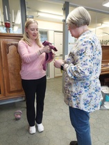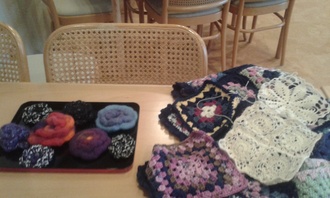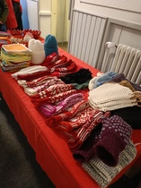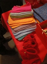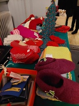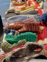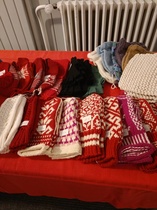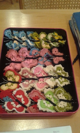 ![]() Marttojen tekemiä lapasia ja lasten sukkia | ![]() Marttojen tekemiä otsapantoja |