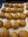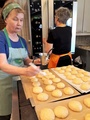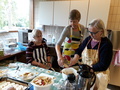 Leipomistalkoot kirkon keittiössä 6.10. Hauskaa oli ja sämpylöitä ja piirakoita syntyi huomiselle syyssadon lounaalle.